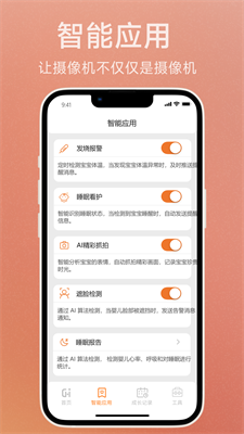 2、支持AI检测功能,快速推送,无论您在哪里,都可随时随地查看婴儿床中宝宝的情况。