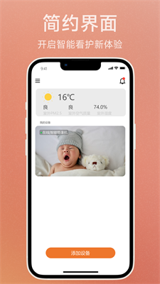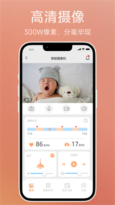 2、实时监测:通过连接智能设备,实时监测婴儿的呼吸.心跳.体温.湿度等生理指标,全天候守护宝宝的健康。
