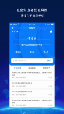 建企查官网app下载2024版是一款企业工程查询软件,用户可以根据自己的需求进行各种信息的查询,通过工程造价、行业资质、工程种类等,帮用户轻松找到自己的招标信息,提升你的工作效率。app内置多种服务功能可以满足用户大部分需求操作简单方便功能性非常强,还实时推送最新的资讯内容,汇聚了各大权威平台信息,有详细的信息分类,极具权威性,操作起来省时又高效,值得推荐使用!