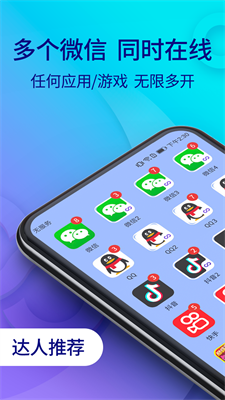 2、全球首创应用多开功能,如微信多开(多开微信).qq多开.派派多开.陌陌多开.微博多开.游戏多开等,依托双开助手自有的内存管理机制,手机无限多开不卡顿。