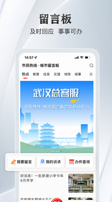 民有所呼,我有所应。武汉123家单位入驻,你的诉求能得到及时回复和处理,办理进度一目了然,还可以随时互动交流。