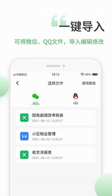 4、支持一键导入,用户可将微信、QQ文件,导入编辑修改。