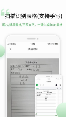 1、扫描识别表格(支持手写)图片/纸质表格/手写文字,一键生成Exc表格。