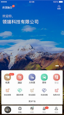国内/国际机票、国内/国际酒店、火车票、用车、会议旅游、签证、保险一站式服务。