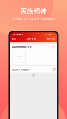 民族精神我辈扬app下载安装官网版是一款弘扬民族文化的应用平台,app专注于为每一个用户宣扬国家民族精神,让大家可以更好的了解我们民族文化内核和精神信息,提升自己的精神文化水平,更好的了解国家和民族发展的方向,深刻的理解民族精神文化,掌握国家复兴的核心力量。用户可以通过该app查看中华民族的文化,了解中华文明历史故事,构建了中国人民的独特精神世界。感兴趣的用户快来下载app体验一下吧!
