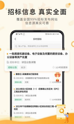 【更新迅速、节省流量】招标和采购信息24小时实时更新,一次性推送,节省流量;