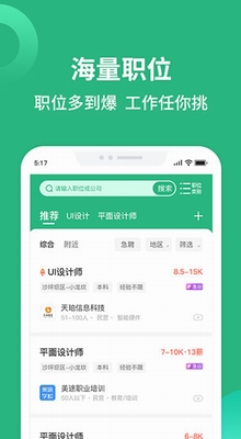 5.附近工作,根据城市区域,智能推荐相关工作岗位;