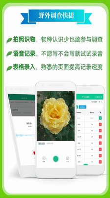 4, 野外调查快捷:拍照识物、语音记录、表格录入等多种方式快捷记录数据