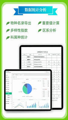 5, 数据统计分析:支持物种名录导出、重要值计算、多样性指数计算等数据统计分析功能