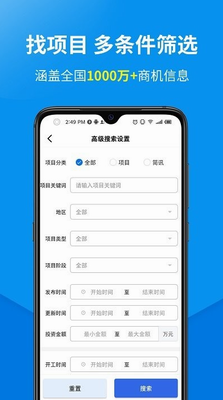 商机查询:工程项目信息、招标信息、中标信息,将关键信息维度进行提炼,形成多维度筛选条件,根据自己关注的维度轻松找到项目。