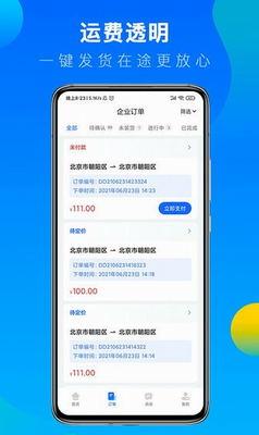 1、支持企业账户登录,选择企业管理员登录在线获取订单信息,在线管理订单;