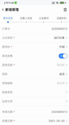 在线进行公证受理申请时需要用户将案件的证据材料以及当事人信息进行在线录入