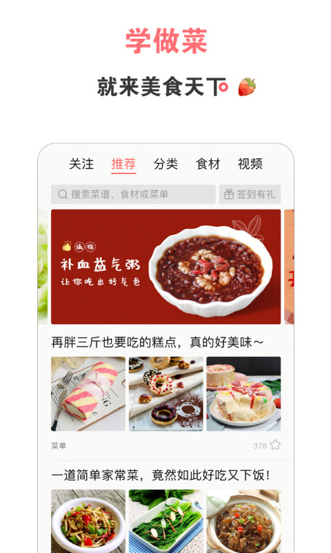 美食天下菜谱大全免费版是一款拥有全国各地菜谱大全的美食app,这里汇聚了海量菜谱,食谱多达上百万篇,用户喜欢的类型基本上在里面都可以找到,选择自己需要的菜谱就可以轻松做出色香味俱全的美食啦,此外,在软件中用户还可以看到非常多的美食资讯专栏,在里面有非常多的人分享自己的美食作品,用户可以随时查询并且给出评价。学做菜,跟我来!欢迎来到美食天下。