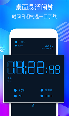 桌面悬浮时钟官网下载最新版是一个精准版悬浮时钟带秒表app软件,有了它以后,用户就可以直接在手机上有一个悬浮的小窗口专门来显示时间了,支持时间校准,格式可自由调节,软件小巧实用,运行流畅,不会出现闪退、卡顿现象,能够随时随地展现时间,非常方便,同时有非常多样的悬浮功能设置,用户可以根据自己的喜好自行调节,满足你的使用习惯,用户可以在这里轻松设置悬浮内容,设置时间提醒,支持自定义时间悬浮框,时间悬浮框app方便实用,让您每时每刻都能看到时间,从小时到分钟,从分钟到秒详细为您显示,是适合活动秒杀倒计时的工具。