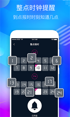 1、设置各种闹钟,可以选择音乐.重复日期等。