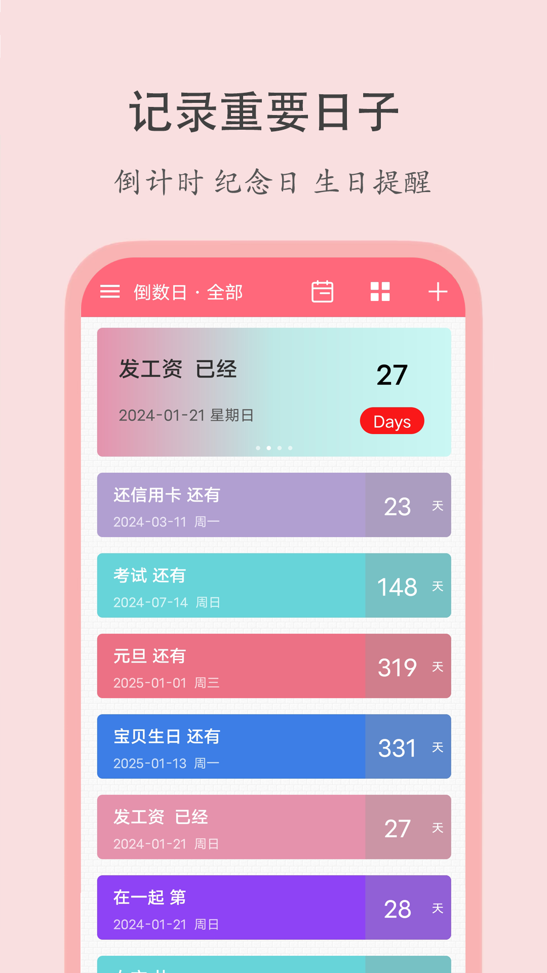 记事、备忘、记忆、提醒事项、倒数日提醒。