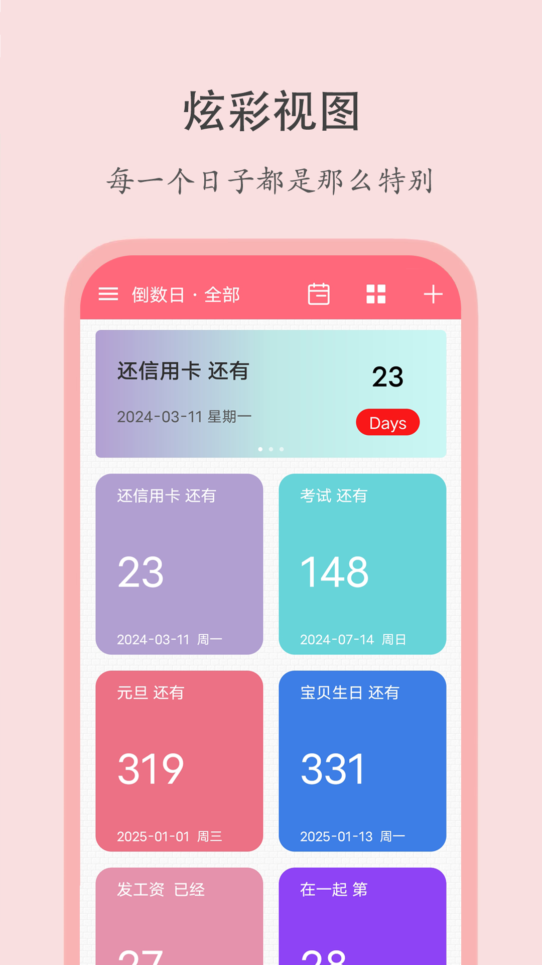 提供20余种炫彩字体显示,让你的倒数日与众不同。