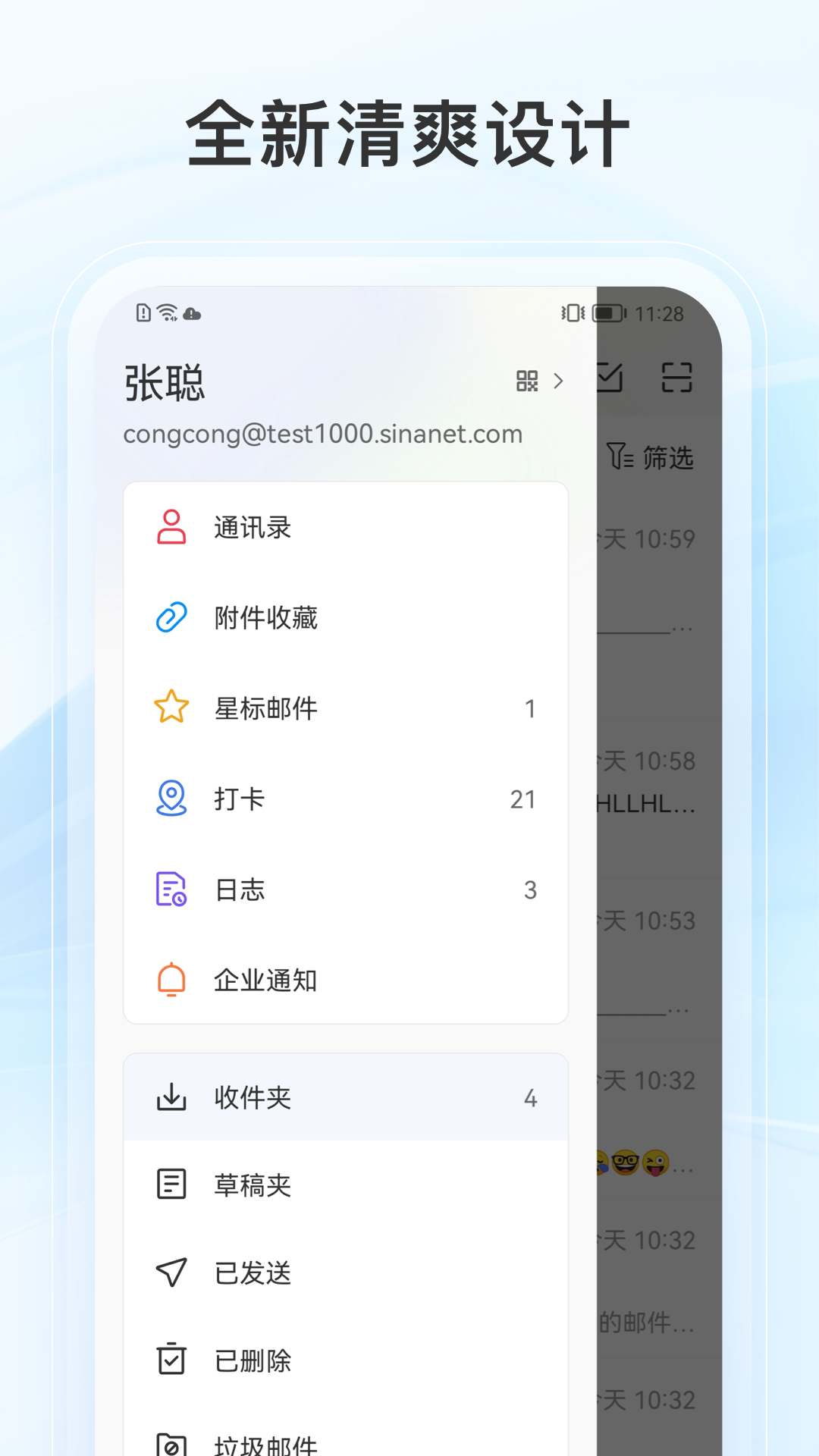 新浪企邮app下载最新版是一款由新浪官方推出的电子邮箱app,也叫做新浪企业邮箱,致力于为广大手机用户提供方便快捷的线上电子邮件收发服务,通过使用这款软件,能够帮助企业降低沟通与管理成本,轻松提高办公效率,与此同时,用户可以在线实现日志编辑功能,日报、周报、月报都能轻松完成,并能随时查看,了解自己的工作情况更加的方便,感兴趣的话就来下载吧,让移动办公成为新浪潮!