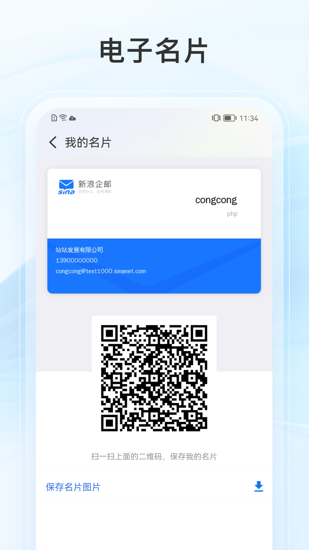 4、名片:电子名片可以在微信和朋友圈上分享,广泛传播,也可以一键保存到手机相册中,便于查找。