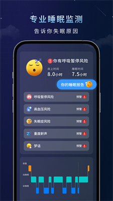 2、帮助你实时的记录你每天的睡眠情况,还有说梦话.鼾声,这样你就能够了解到自己的睡梦中情况。