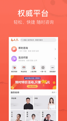 高人汇app官方下载2024版是一款真人在线预测运势服务软件,涵盖心理咨询、情感分析等功能一应俱全,对于未来,提供切实的解答和方向指引。app能运用几千年传统文化,为您通晓命运,解惑,或决断未来,提供切实的解答和方向,而且专业的导师更是为你一对一进行线上的心理辅导,对你的疑问进行答疑解惑。还能做到结婚选日子、剖腹产选日子、搬家择日、开工开业择吉等选时择日服务,对风水感兴趣的用户不妨下载体验一番!