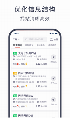 优质的筛选模式,可以根据距离最近、排队最少、电池最多等条件进行筛选;