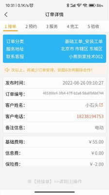 丰富的上门安装服务订单提供给你进行查看跟接收