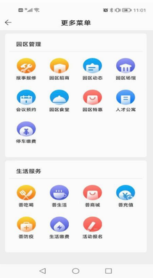 3、园区餐饮、门禁管理、停车缴费、我的留言等让园区成为你第二个家。