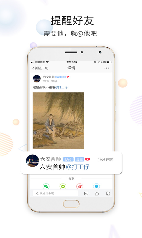 【分享至通讯录】碰到好的文章,可以一键分享给APP中的好友和群组中。