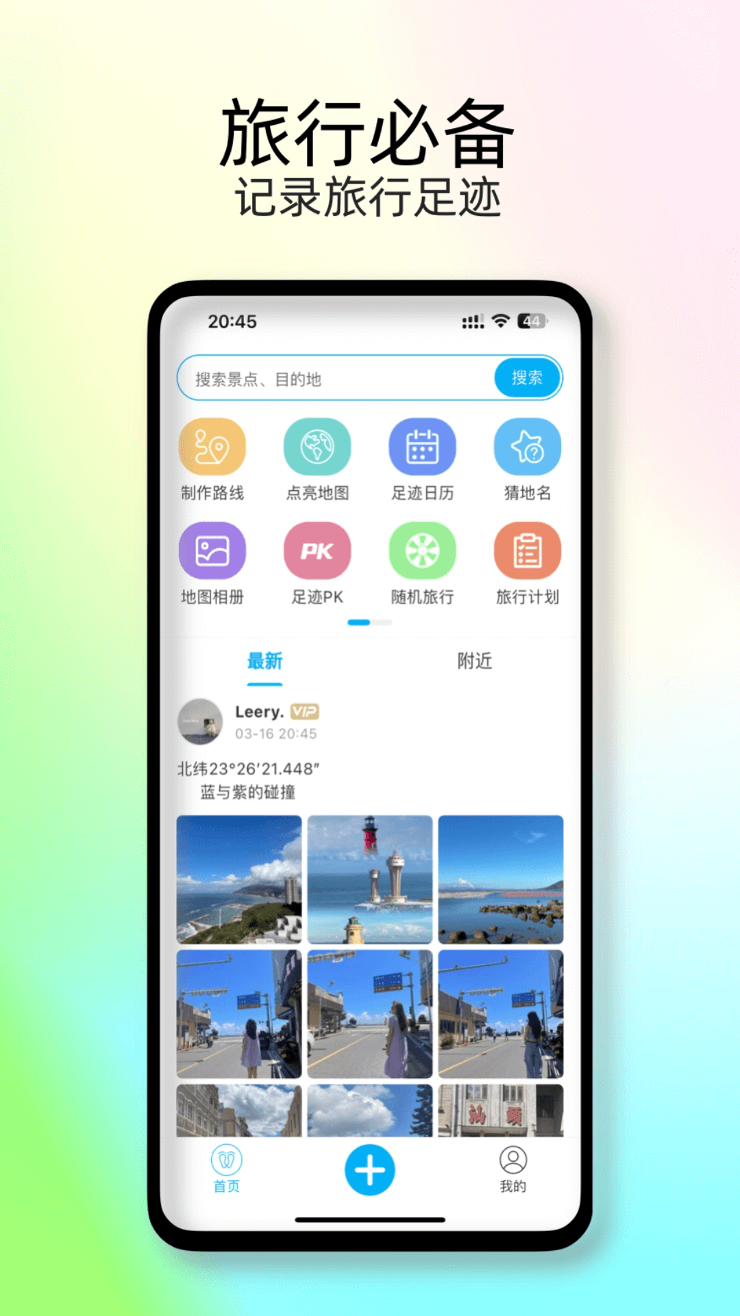 足迹时光机免费下载手机版是一款很好用的旅行足迹记录app,界面简洁清爽,操作简单易上手,在这个软件当中,我们可以将自己到过的地方记录下来,软件会根据我们到过的地方帮我们生成旅游路线,大家可以将这个旅游路线分享给好友,也可以分享到微信、qq等社交平台,给朋友们分享旅游的快乐时光,当然,我们也可以在软件当中查询其他旅行者的足迹地图,一起交流探讨各地的美食、美景,喜欢旅游的话就来下载这个app试试吧。