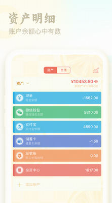 5、提供资产管理,随时展示信用卡、支付宝等账户余额情况;