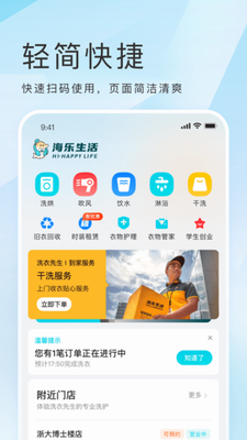 海乐生活app下载安装官网2024是一款提供智能自助洗衣服务的生活软件,界面十分简洁,软件支持非常多的功能,让大家能够更好的进行自助洗衣,大家可以在平台内搜索本地门店,让大家能够在线下单,体验更专业的洗衣体验。同时海乐生活还提供了创意交互功能,让用户在洗衣的过程中可以玩游戏、看视频、领取礼包等,增加洗衣的乐趣。有需要的朋友欢迎来下载使用哦!