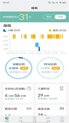 3、每日睡眠整晚睡眠质量.心率和呼吸情况.睡眠周期分析。