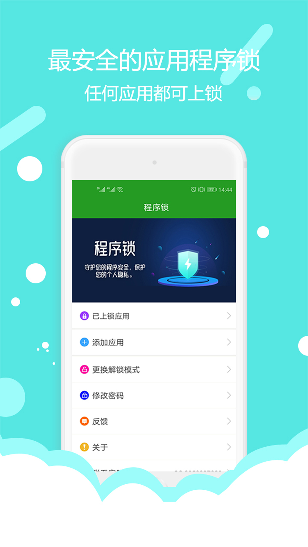 程序锁下载安装官方正版是一款由长沙巧希网络技术有限公司开发的手机安全防护软件,界面简洁、体积小巧,可以帮助用户保护手机上的敏感应用和数据安全,这个软件支持多种锁定方式,包括数字密码、图案密码、PIN码等,同时还具备伪装功能,可以在他人尝试解锁时显示虚假的出错信息,增加安全性,如果有对此app感兴趣的小伙伴们,欢迎前来本站安装体验。