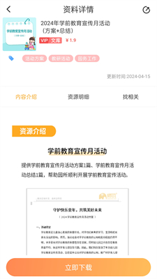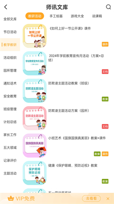 1、板块清晰:视频课程.音频.资料.环创.名师名课等幼师工作学习刚需。