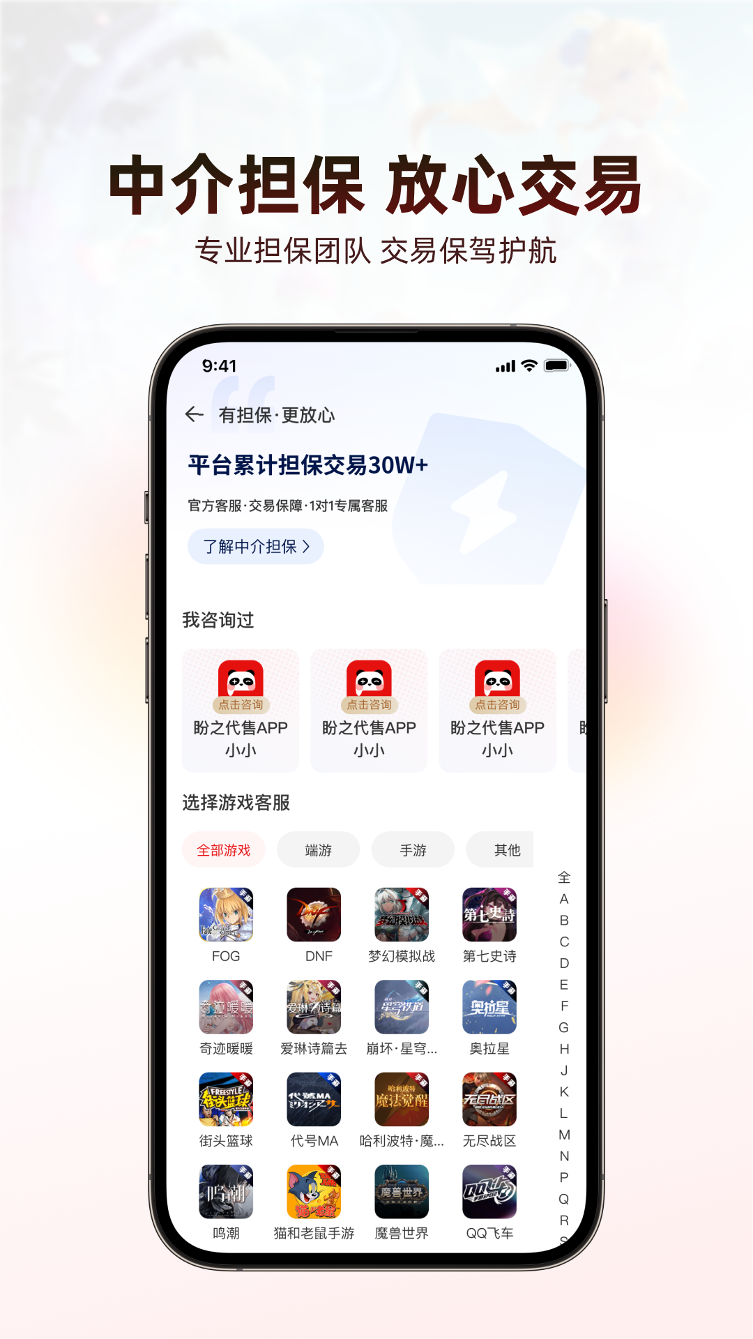 盼之代售官网下载苹果版是一款由四川盼之网络科技有限公司推出的线上游戏账号交易软件,界面清晰,操作简便,支持一键发布账号、智能搜索匹配、实时交易提醒等功能,汇集了各类热门游戏的账号资源,包括角色账号、高级装备、游戏币等,同时采用了多重安全验证措施,确保账号交易的真实性和安全性,通过实名认证、交易保险和专业的客服团队,为用户提供全面的交易保障,如果想买或者想卖游戏号的话,那么盼之代售app是一个绝佳的选择哦。