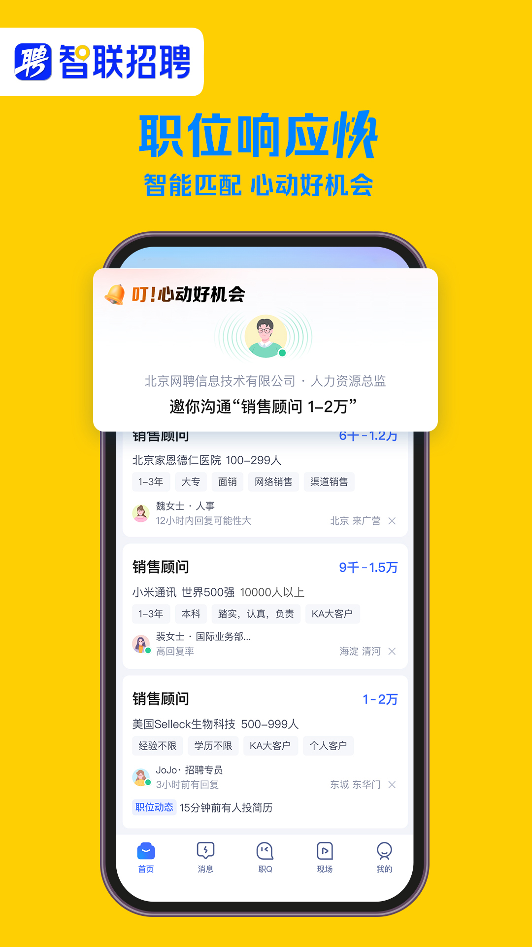 智联招聘app下载安卓版是北京网聘信息技术有限公司开发的一款手机端线上招人找工作求职app,界面简洁清爽,操作简单易上手,致力于为求职者和企业提供高效、便捷的招聘服务,该软件拥有庞大的职位信息库,覆盖了全国各大城市和行业,为求职者提供海量的全职、兼职及实习机会,支持简历一键投递、职位智能推荐、在线面试等功能,极大地提高了求职效率,这个app轻松连接职场供需,助力人才与企业共同成长,快来体验吧。