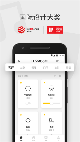 3、场景可以一次自动运行多个设备。例如每天清晨,您可以点击一下起床场景。