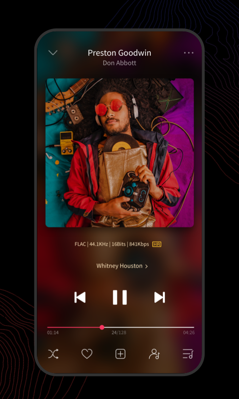 注:频谱模式下,点击歌曲/艺术家名显示区域可呼出进度条显示;切换到歌词页面再切回封面界面则可隐藏进度条。