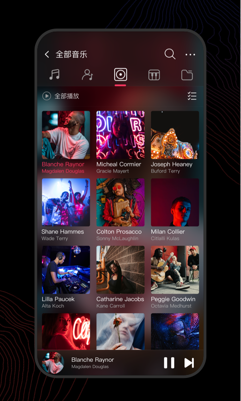 5、新增艺术家/风格下专辑及歌曲列表切换选项。