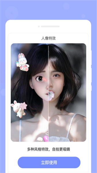 用户可选择人像特效功能来将人像生成漫画人物效果使用,拥有自己的专属漫画形象。