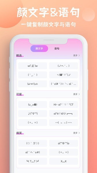 4、表情语句,多种颜文字和优美的语句精心挑选,一键复制让你成为聊天大师。