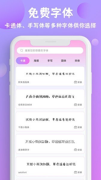 3、字体美化,卡通体、手写体、海报体,多种字体供你选择,换字体停不下来。