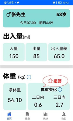 4、出入量统计助手提供每日体液出入量和体重的记录和统计,非常方便。