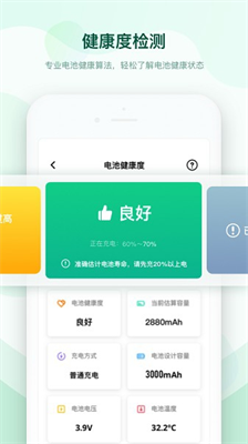 1、寿命观看,电池目前的寿命可以同步的观看,保护你的手机延续使用的时间。