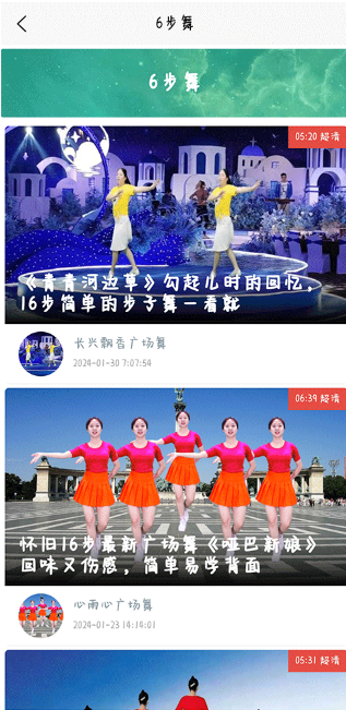 3、进入后可以看到不同广场舞发布的广场舞视频,点开即可跟练。