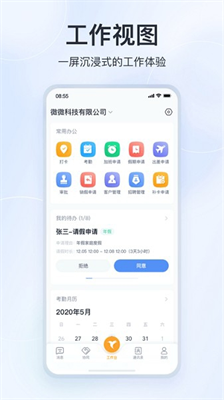 微微工作app是一款全新而又受欢迎的线上商务办公聊天软件,拥有打卡、考勤、加班申请、请假申请、出差申请等多种常见的功能,通过微微工作这个软件,用户可以轻松掌控自己的日程安排,实现高效的职场沟通,也可以随时在线沟通交流,多人协作、开展视频会议,可以很好的提升员工的办公效率,如果喜欢或者对这个软件感兴趣的话,现在就来下载体验吧。