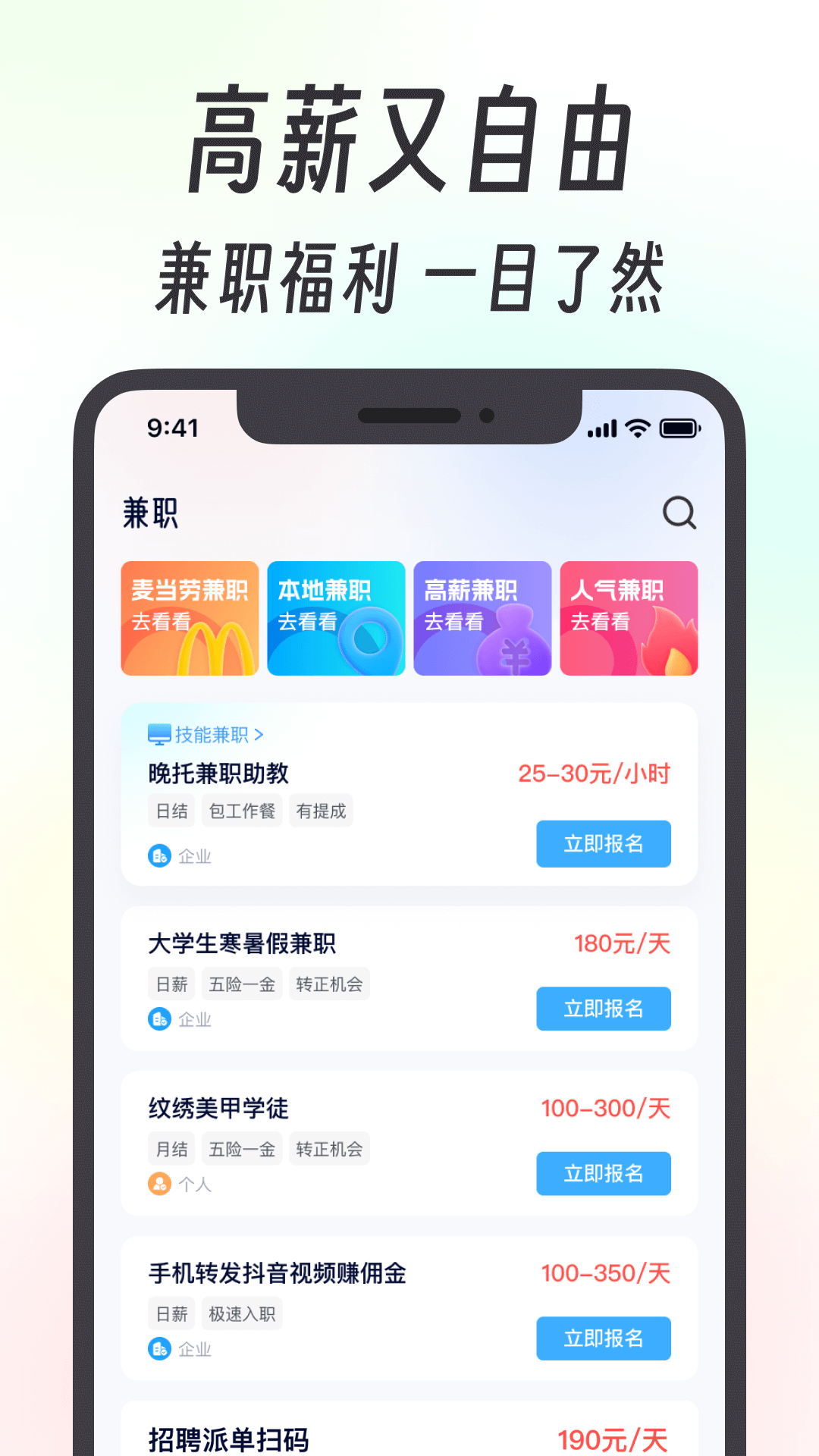 各种岗位每天更新,是有时间的上班族,宝妈、斜杠青年、大学生赚生活费的优选挣钱软件,让你轻松兼职找工作。