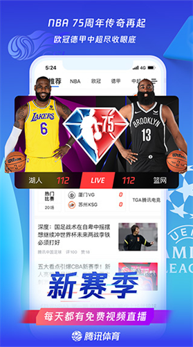 NBA新赛季,每天至少三场视频直播,只在腾讯体育。
