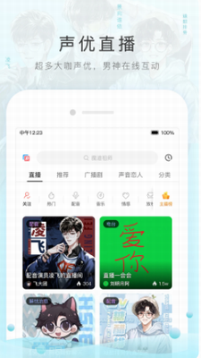 汇集中日知名CV、二次元、段子手、催眠等不同领域的大咖主播;开启语音连麦,和大咖互动,用声音交友;做主播,被搭讪被打赏,从此生活奔小康!